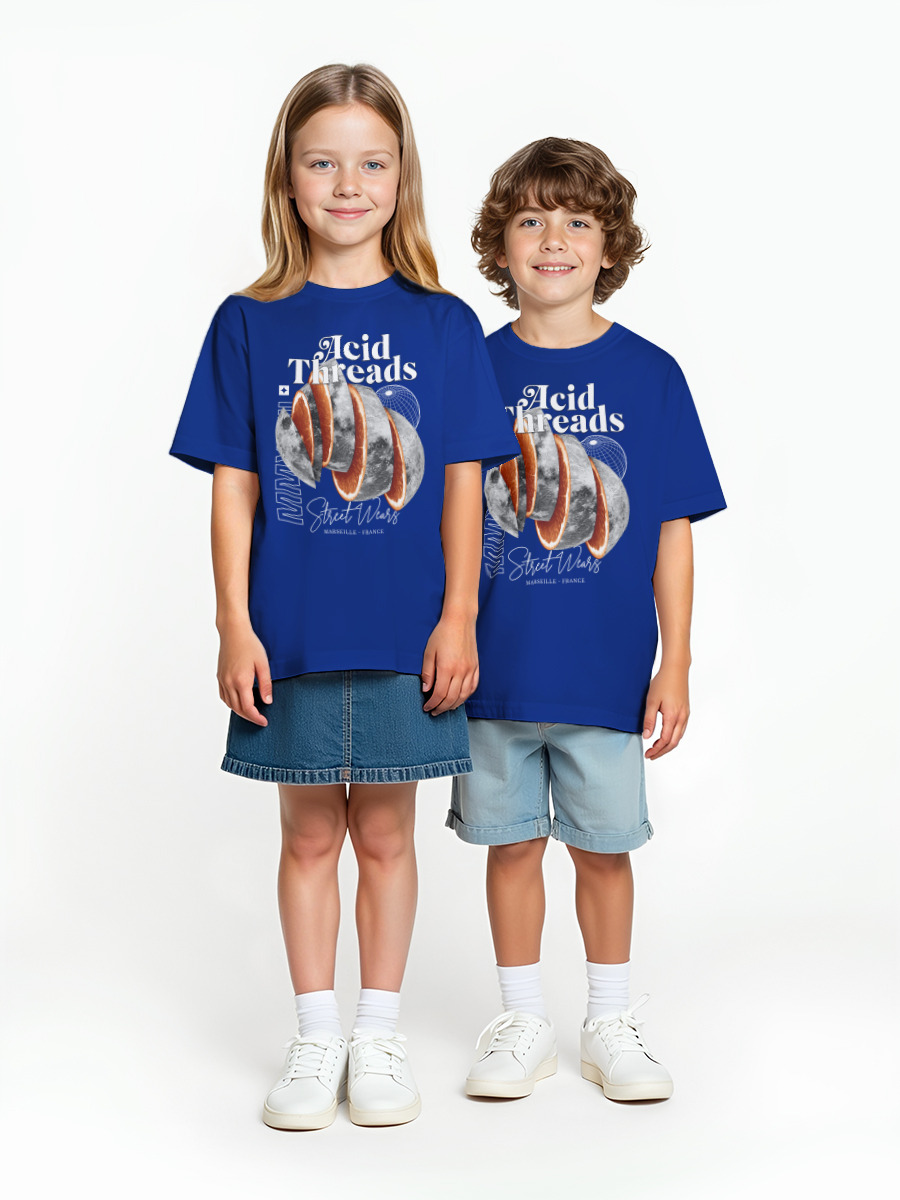 Детская оверсайз футболка «Acid Threads» цвет синий