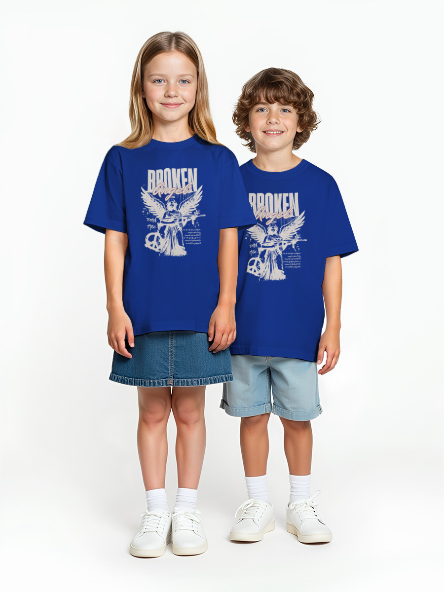 Детская оверсайз футболка «Broken Angel» цвет синий