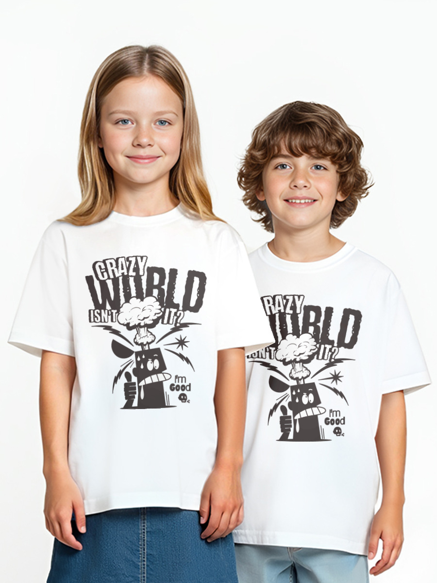 Детская оверсайз футболка «Crazy World» цвет белый