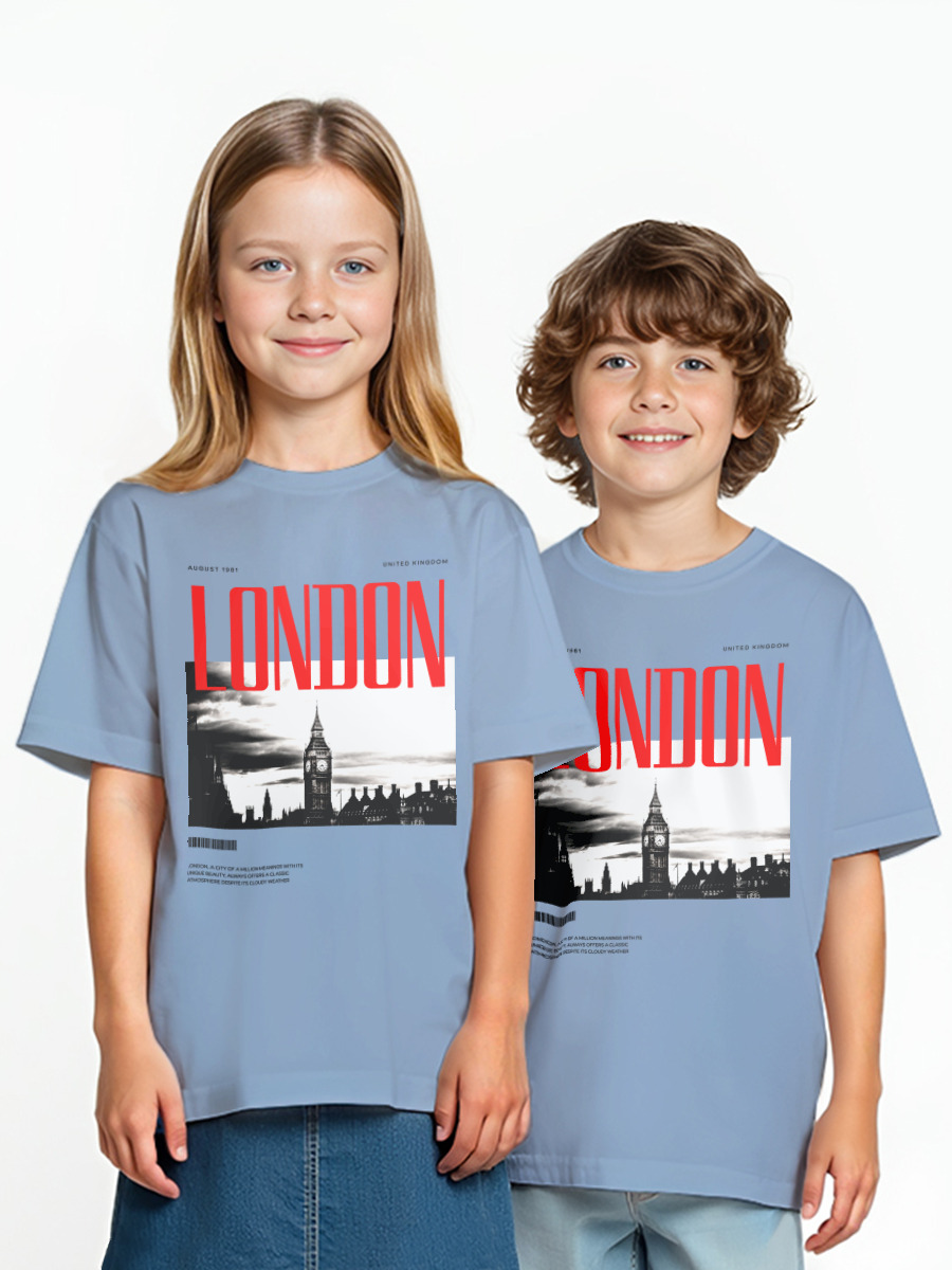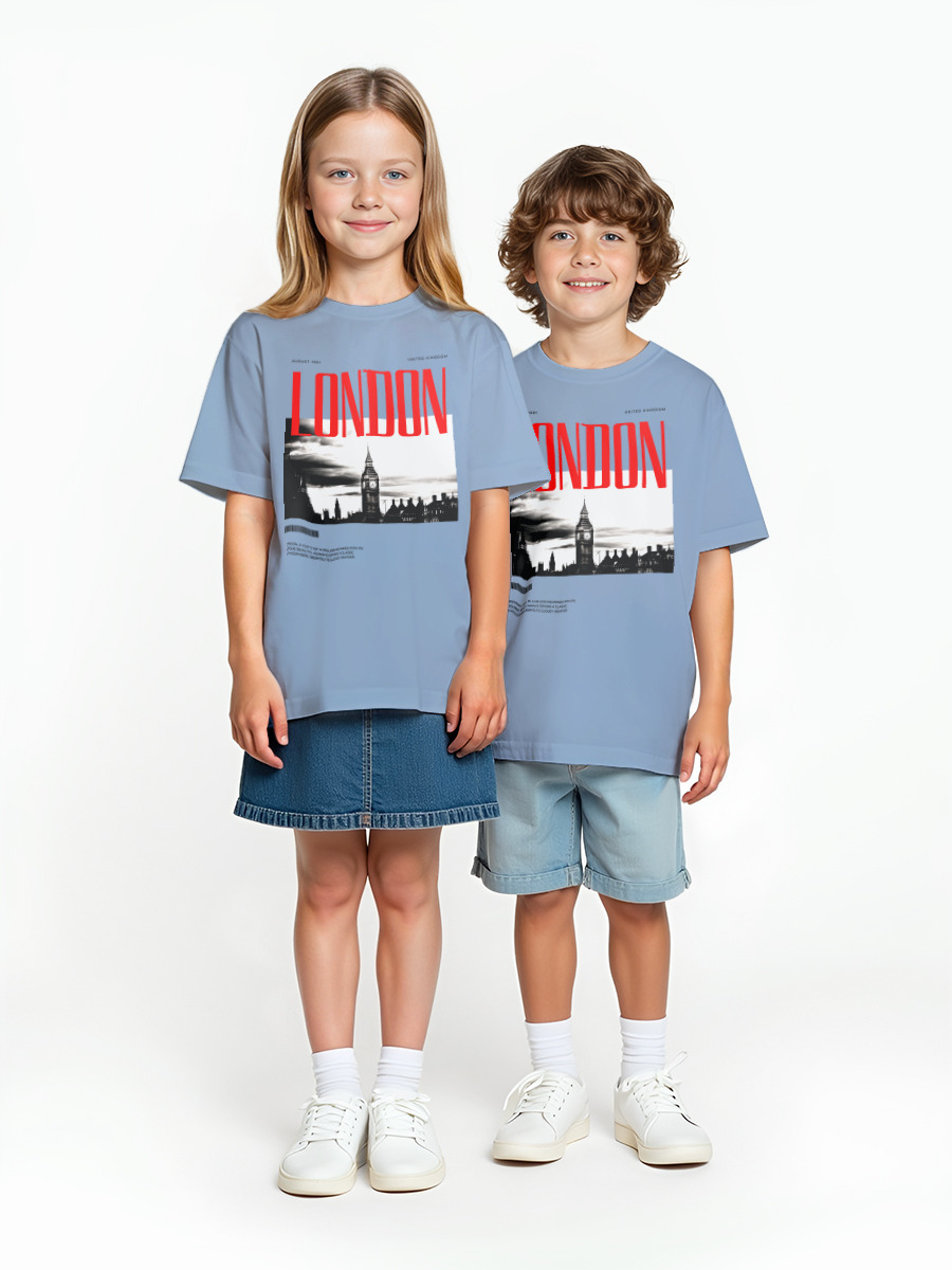 Детская оверсайз футболка «London» цвет голубой