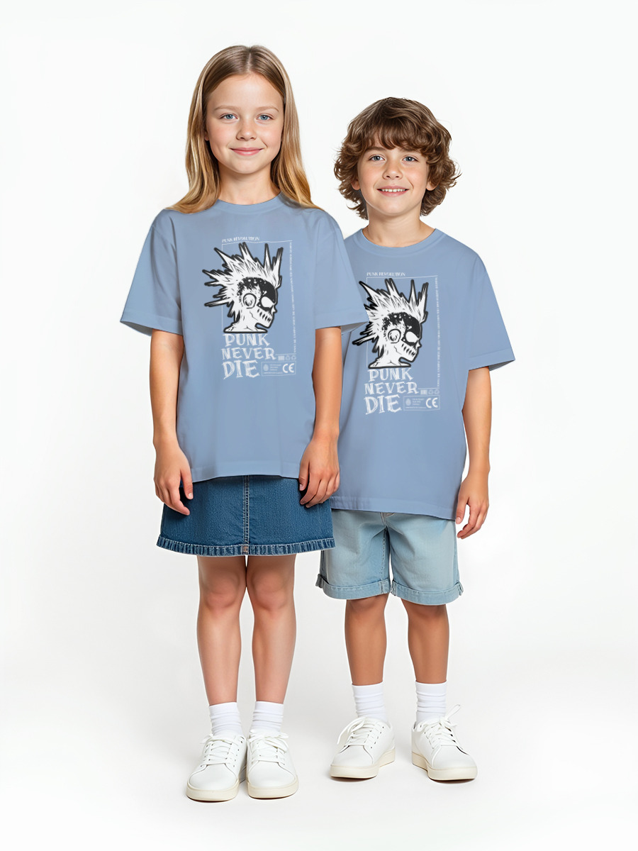 Детская оверсайз футболка «Punk Never Die» цвет голубой