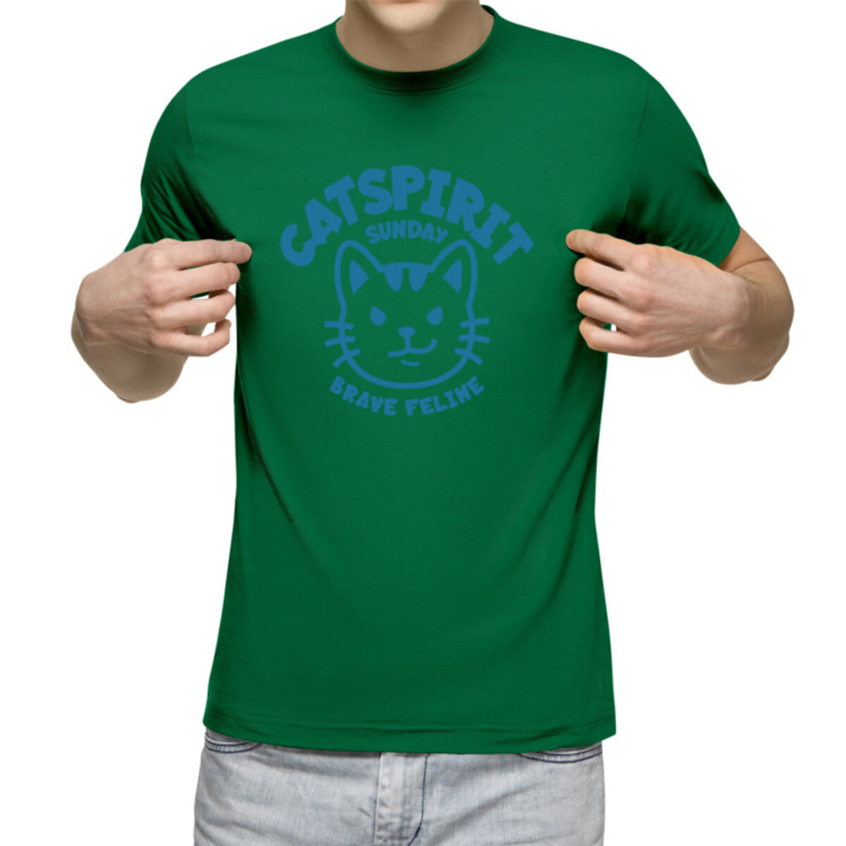Мужская футболка «Cat Spirit» цвет зеленый