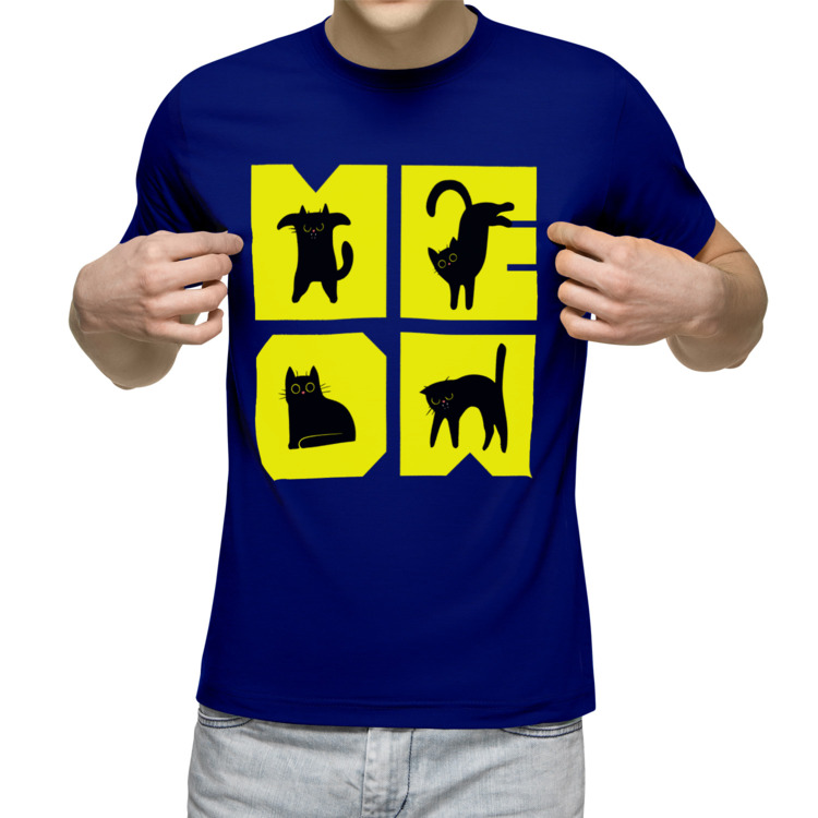 Мужская футболка «Мяу» цвет синий