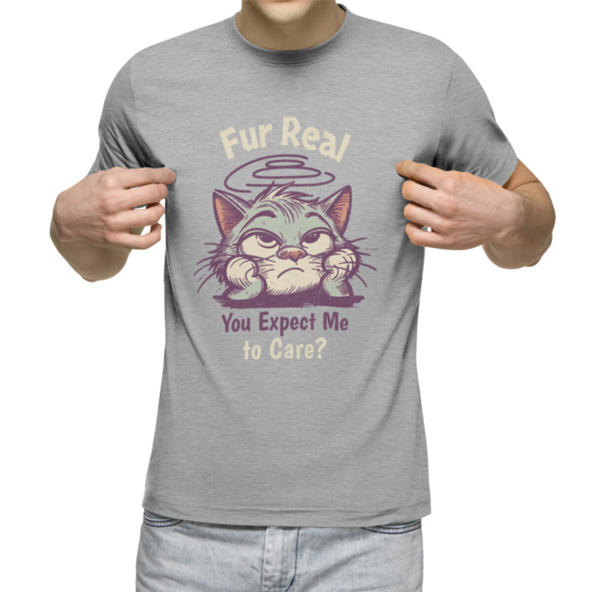 Мужская футболка «Скучающий Кот» цвет серый меланж