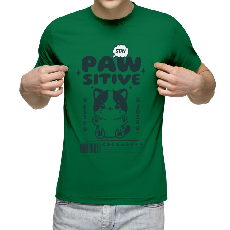 Мужская футболка «Stay Pawsitive» цвет зеленый